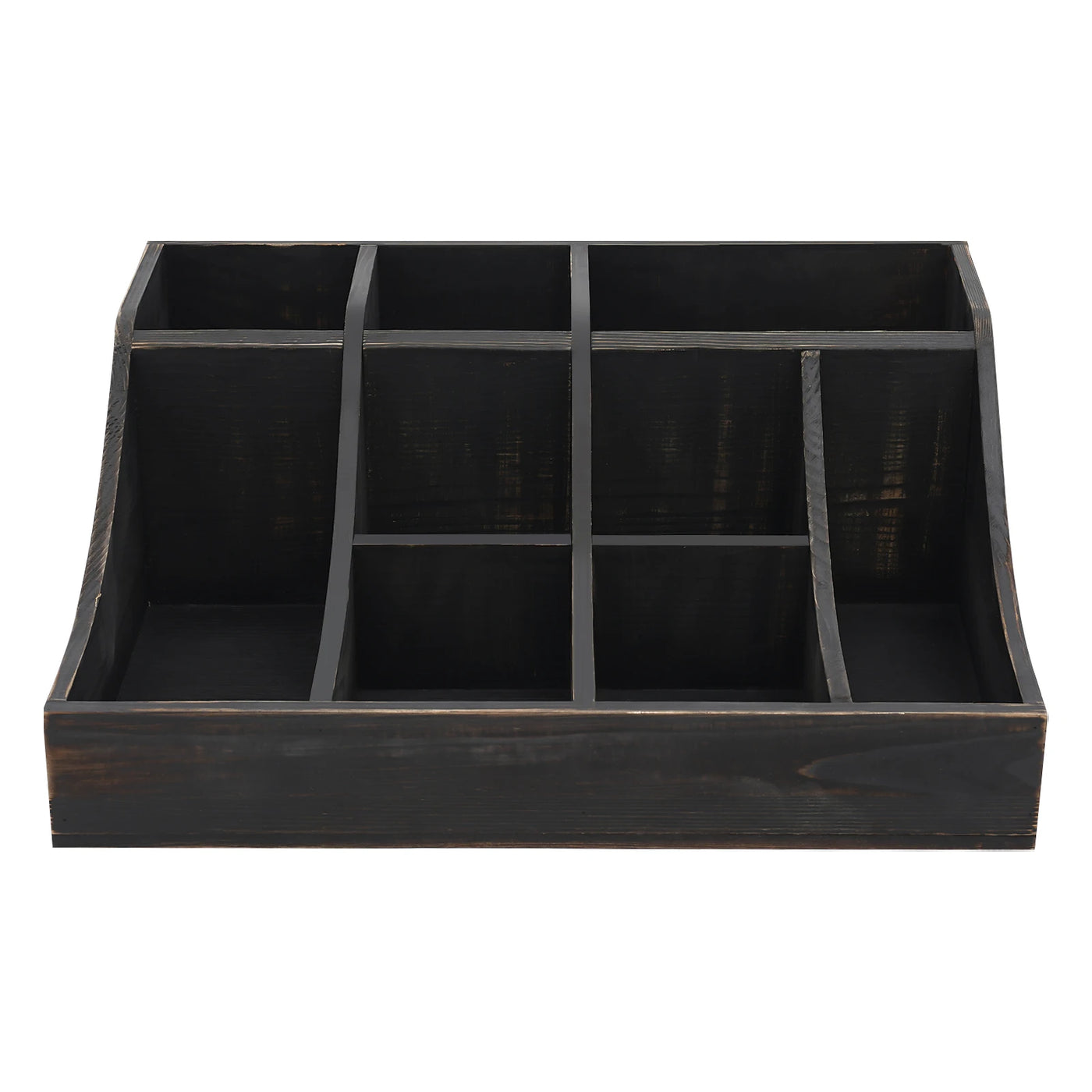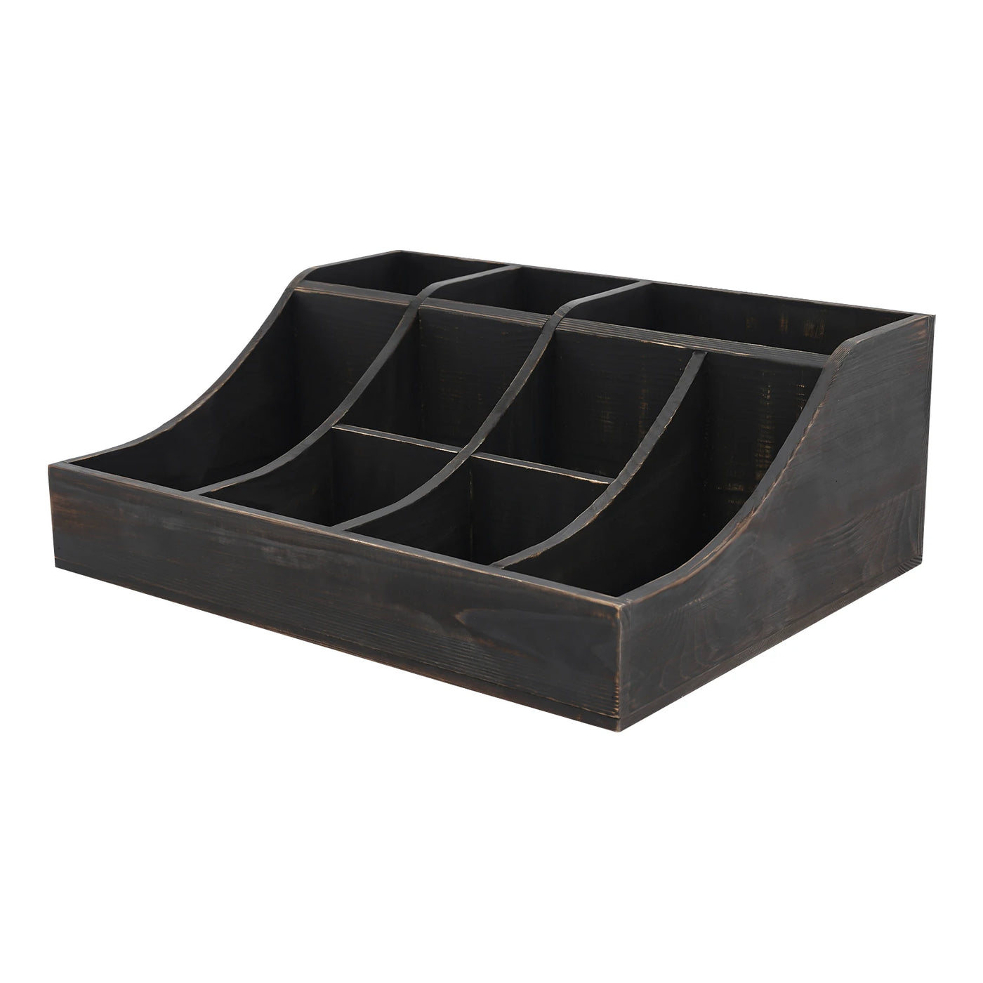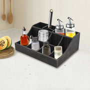 (Black) Wooden Condiment Holder, 9-Compartment Condiment Organizer, Tabletop Tea & Coffee Supplies Organizer, for Kitchen - United States / black